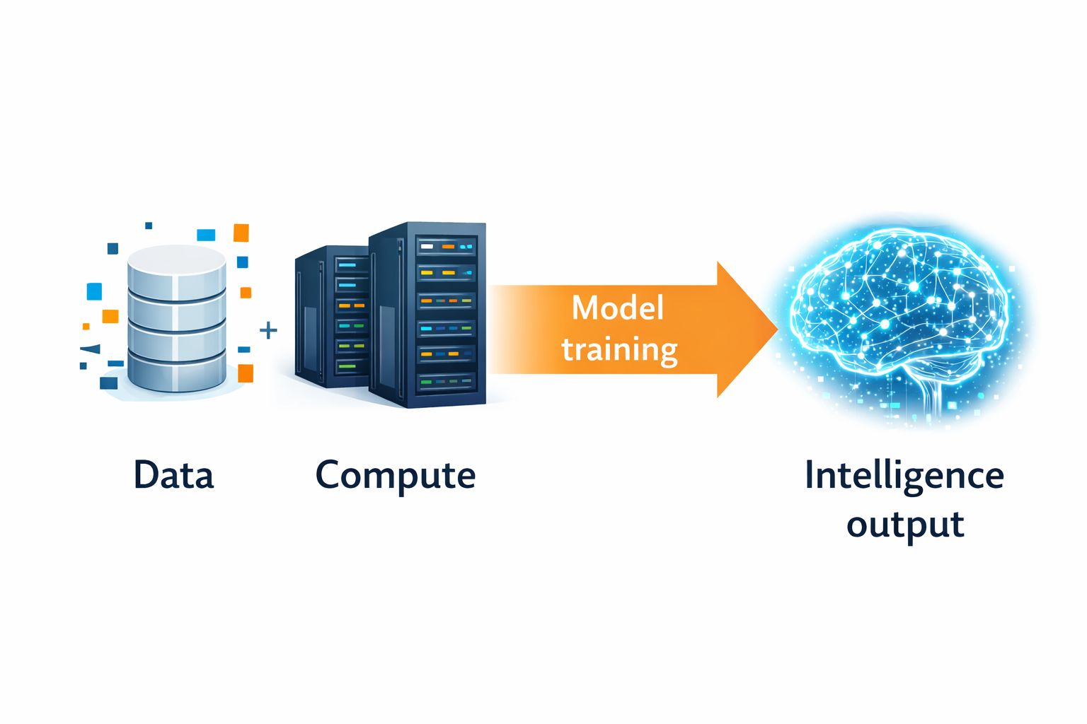 Data + Compute → Model training → Intelligence output