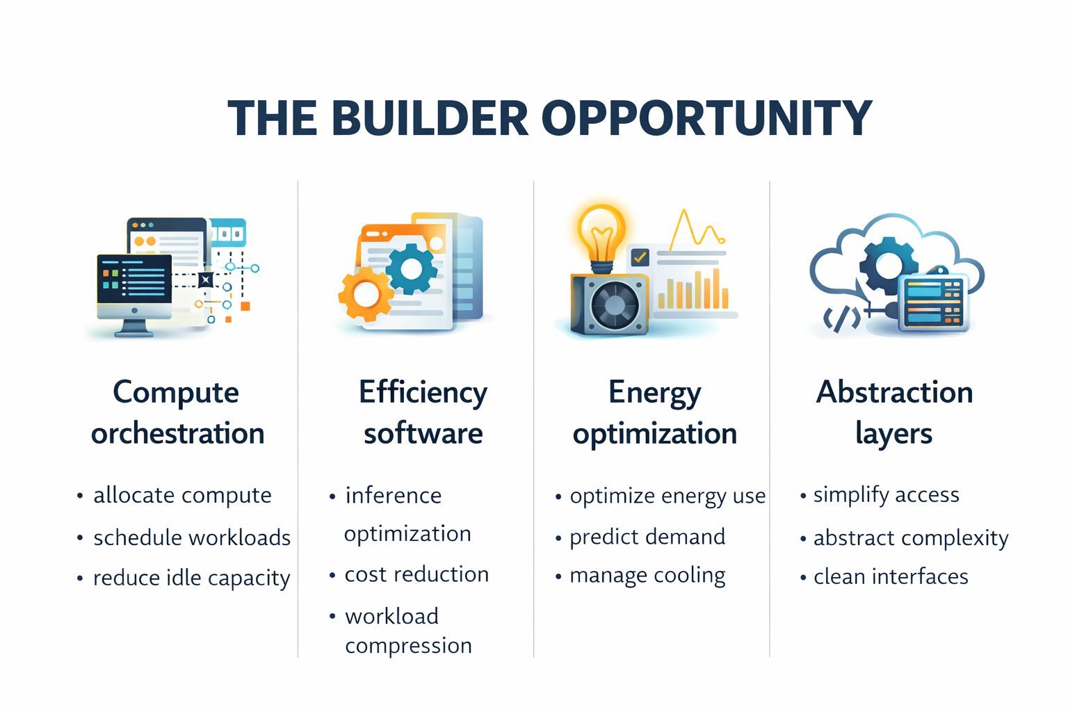 They’ll build better infrastructure. Or they’ll build the orchestration, optimization, and abstraction layers that make that infrastructure dramatically more useful.